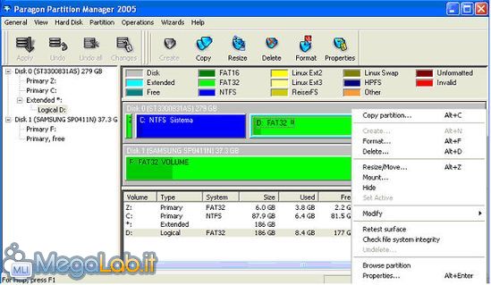 Paragon Partition manager 2005 permette una gestione completa dei dischi fissi: potete creare, cancellare e formattare le partizioni presenti, potete ridimensionarle creando spazio libero per nuove partizioni, convertirle da NTFS a FAT32 o viceversa. Il programma sopperisce a una delle più gravi mancanze di Windows, e in pochi secondi e con un riavvio del PC per completare le operazioni eseguite è possibile avere pieno controllo delle partizioni presenti sul disco fisso. Il programma è scaricabile da questo indirizzo cliccando su Free download. Per ricevere il seriale necessario alla registrazione collegatevi a questo indirizzo e compilate il form con tutti i dati richiesti. Nell'e-mail che riceverete con il seriale, vi sarà fornito anche un codice che darà diritto ad uno sconto del 20% su un acquisto on-line di un programma Paragon. Segnala ad un amico |