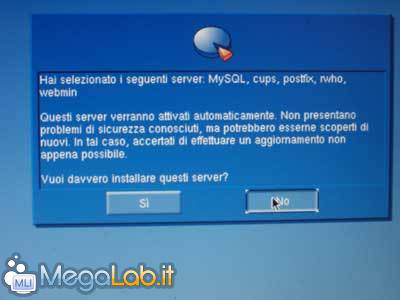 Successivamente cliccate so OK.Se avete scelto di installare i pacchetti relativi ad applicazioni server ecc.. vi verranno fatte ulteriori richieste di configurazione, potete eseguirle o saltarle, potrete configurare il tutto una volta installato Linux.