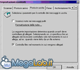 SMTP: avast! può bloccare i messaggi che, una volta controllati, risultino infetti e quindi la cosa migliore è spuntare la casella Controlla posta in uscita e non permettere l'invio di posta infetta.