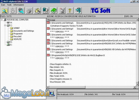 VirIt lite non aggiornato, veloce nella scansione ma nonostante sia configurato per controllare tutti i file non lo fa, trova pochi virus e ne rimuove anche meno solo 339.