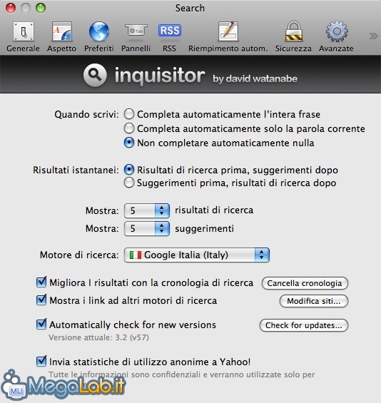 Per aggiungere ulteriori motori di ricerca in Safari sarà necessaria l'installazione di Inquisitor.