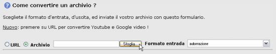 Se si seleziona la voce Archivio, si può invece inserire un file presente nella memoria del PC; per fare questo, basta premere sul pulsante sfoglia e selezionare ciò che si vuole convertire.