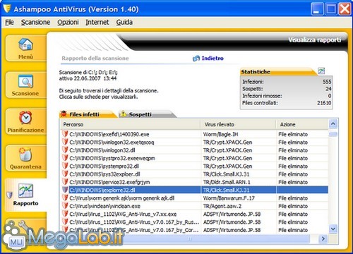 Appena installato intercetta ed elimina alcuni virus attivi in memoria.