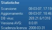 Nella parte inferiore destra (Statistiche), sono presenti alcune informazioni, quali la versione del programma, l'ultimo aggiornamento di esso, l'ultima scansione antivirus e la versione del programma utilizzato: