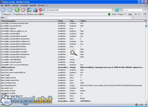 Rendendomi conto dell'enorme errore, dopo aver riattivato Cronologia, ho provato a cercare un metodo per risolvere il problema e l'ho trovato fra le stringhe di configurazione del noto browser di casa Mozilla. Apriamo Firefox e digitiamo nella barra degli indirizzi la stringa about:config. Verremo accolti da una finestra che possiede al suo interno tutti i valori necessari al corretto funzionamento del browser. Nella casella Filtro scriviamo la stringa browser.tabs.closeButton e verremo accolti dall'unico risultato avente tale nome cioè quello che ci interessa. Facciamo doppio click su di esso e ci apparirà una finestra come questa. Il valore 1, nonché quello impostato di default, indica che il pulsante è abilitato e quindi si vede. Per toglierlo basterà sostituire al valore 1 il valore 0. Qualora vogliate ripristinare il tutto, basterà eseguire il processo inverso. La differenza è osservabile sin da subito Il trucco presentato rimuove il tasto di chiusura della scheda solo quando essa NON è attiva. Quando la selezionate, il tasto torna. Segnala ad un amico |