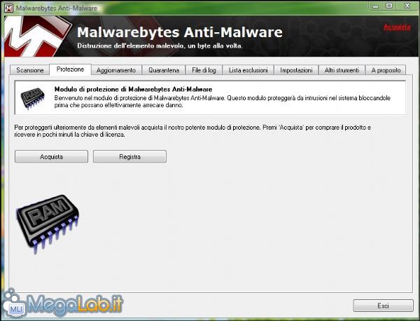 Per attivare il modulo di protezione in tempo reale basta cliccare su Avvia protezione. La protezione in real time lavora in maniera molto tranquilla, sembra quasi di non averla: in realtà c'è e al momento opportuno interviene prontamente, bloccando il malware in questione, come per esempio un rogue program che tenta di installarsi: Oppure in presenza di un trojan Vundo: