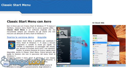 Classic Start Menu è l'alternativa a pagamento di CSMenu (trattato poco fa). Si scarica partendo da questo sito, cliccando sul link denominato Scarica la versione demo.