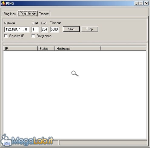 Su Network digiteremo il segmento di rete da scansionare (dovrebbe essere già impostato), mentre su Start e su End sceglieremo rispettivamente l'host iniziale e finale.
