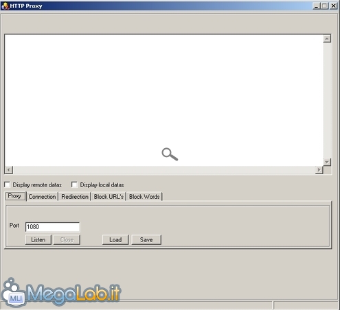 Notiamo anche le opzioni Display remote datas e Display local datas, che permettono lo sniffing dei dati in transito. Spostiamoci nella scheda Block URL’s dove potremmo inserire i siti che verranno bloccati.