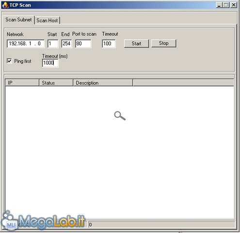 Analogamente alle due utility di scansione precedenti, è presente anche la scheda, dalla quale è possibile scansionare l'intero segmento di rete per controllare lo stato di una determinata porta.