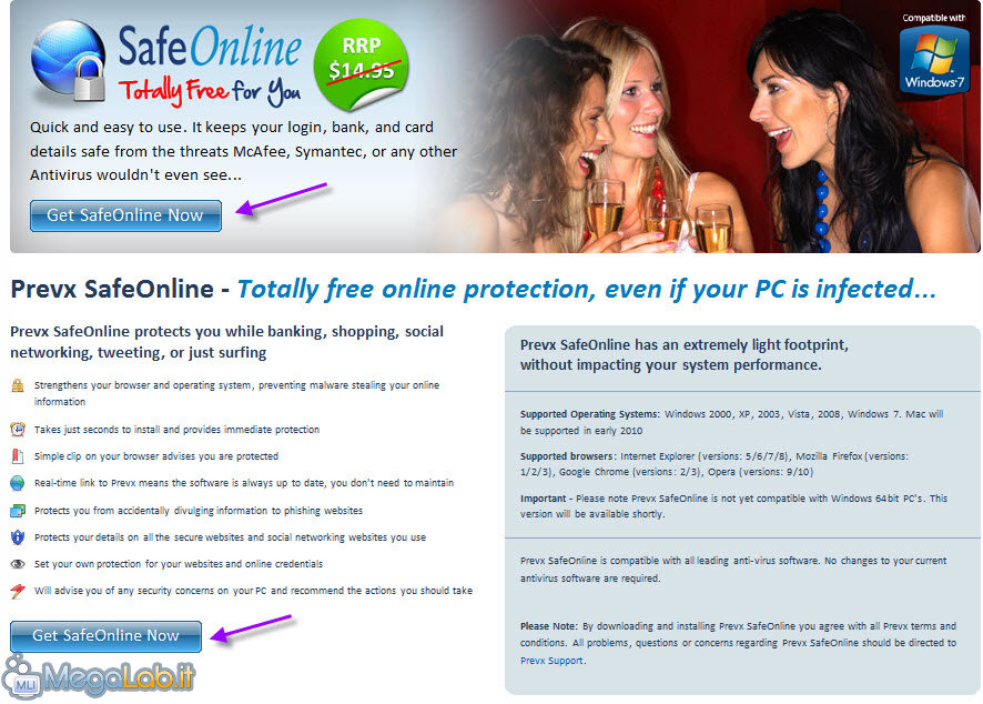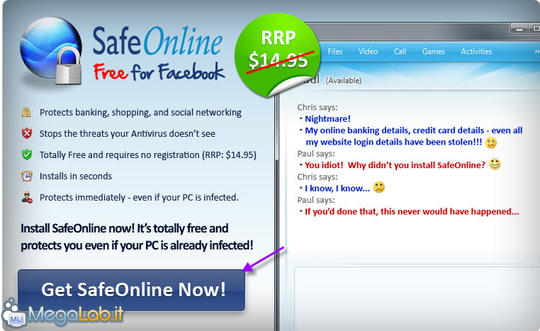Ora che siete registrati portatevi in questa pagina e cliccate su Diventa fan. Dopo aver completato anche questo passaggio cliccate su Get SafeOnline Now!. Nella pagina successiva scaricate il programma cliccando nuovamente su Get SafeOnline Now. Procedete con l'installazione. Attendete che il programma si configuri automaticamente.