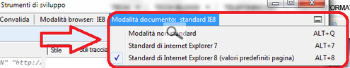 Discorso diverso va fatto per gli sviluppatori, che invece trovano un compagno di lavoro più utile in Strumenti di sviluppo, piuttosto che in Visualizzazione Compatiblità, in quanto hanno la possibilità, utilizzando un solo strumento, di provare le loro creature con ben tre versioni del motore di rendering del browser più diffuso.