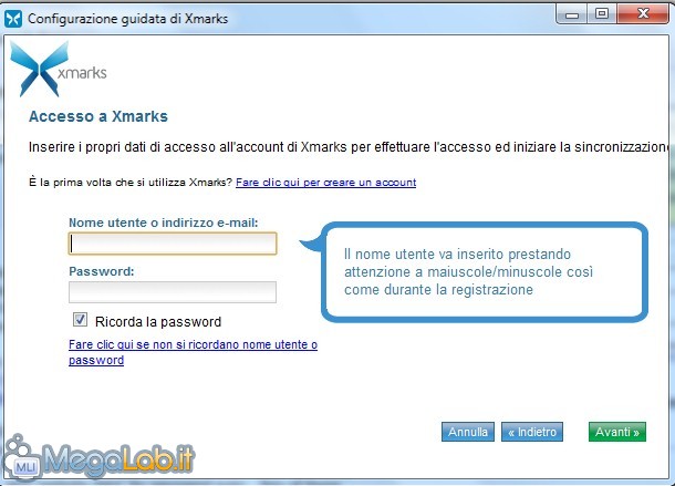 Se abbiamo già un account Xmarks, selezioniamo Yes e effettuiamo il log-in.