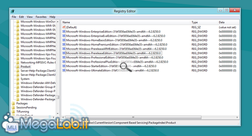 Windows 8, il nuovo sistema operativo di casa Microsoft il cui rilascio è previsto per la fine dell'anno corrente, continua a far parlare di sé. Infatti, a seguito del rilascio della Consumer Preview avvenuto alla fine del mese scorso, molte novità sono state svelate al pubblico sulle caratteristiche di questa nuova versione del popolare sistema operativo a finestre (o a piastrelle?). Ma sembrano ancora esserci diverse cose da scoprire. Una di queste sarebbe rappresentato dalle versioni in cui, al momento della messa in commercio, verrà rilasciato il nuovo sistema operativo. Sembrerebbe impossibile riuscire a ricavare quest'informazione dai meandri della Consumer Preview, ma invece non è così. Infatti, come riportato dal sito Engadget.com, visitando una determinata posizione nel registro di sistema, ci si ritroverebbe davanti alla seguente schermata, la quale mostra chiaramente, tramite le diverse chiavi contenute al suo interno, tutte le versioni di Windows 8: Come potete chiaramente intuire dall'immagine, il nuovo sistema operativo sarebbe rilasciato in ben 9 edizioni diverse, e cioè:
