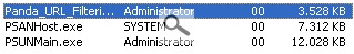 Panda Cloud in background si fa sentire poco sulle prestazioni del sistema, 3 processi con consumo di RAM intorno ai 22 MB e CPU da 0 al 2%.