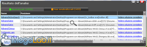 Dall'analisi del computer erano emersi 455 file non rimossi. Ho provato ad attivarne alcuni per vedere come si comportava Panda Cloud.