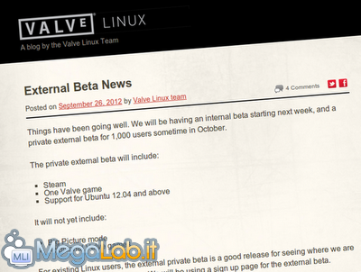 Valve annuncia la prima beta di Steam Linux per ottobre, riservata però solo a 1000 betatester27/09/2012 - A cura di